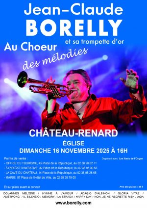 Labellisée Loir ‘étape et Village de Caractère, ChâteauRenard,  jolie cité médiévale du Gâtinais. accueillera Jean-Claude Borelly pour un concert le dimanche 16 novembre à 16h00.